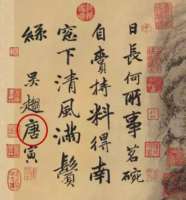 唐寅(唐伯虎)的署名,“唐”字多是用一豎連“口”字,用一橫連“口”字的多是有問(wèn)題。