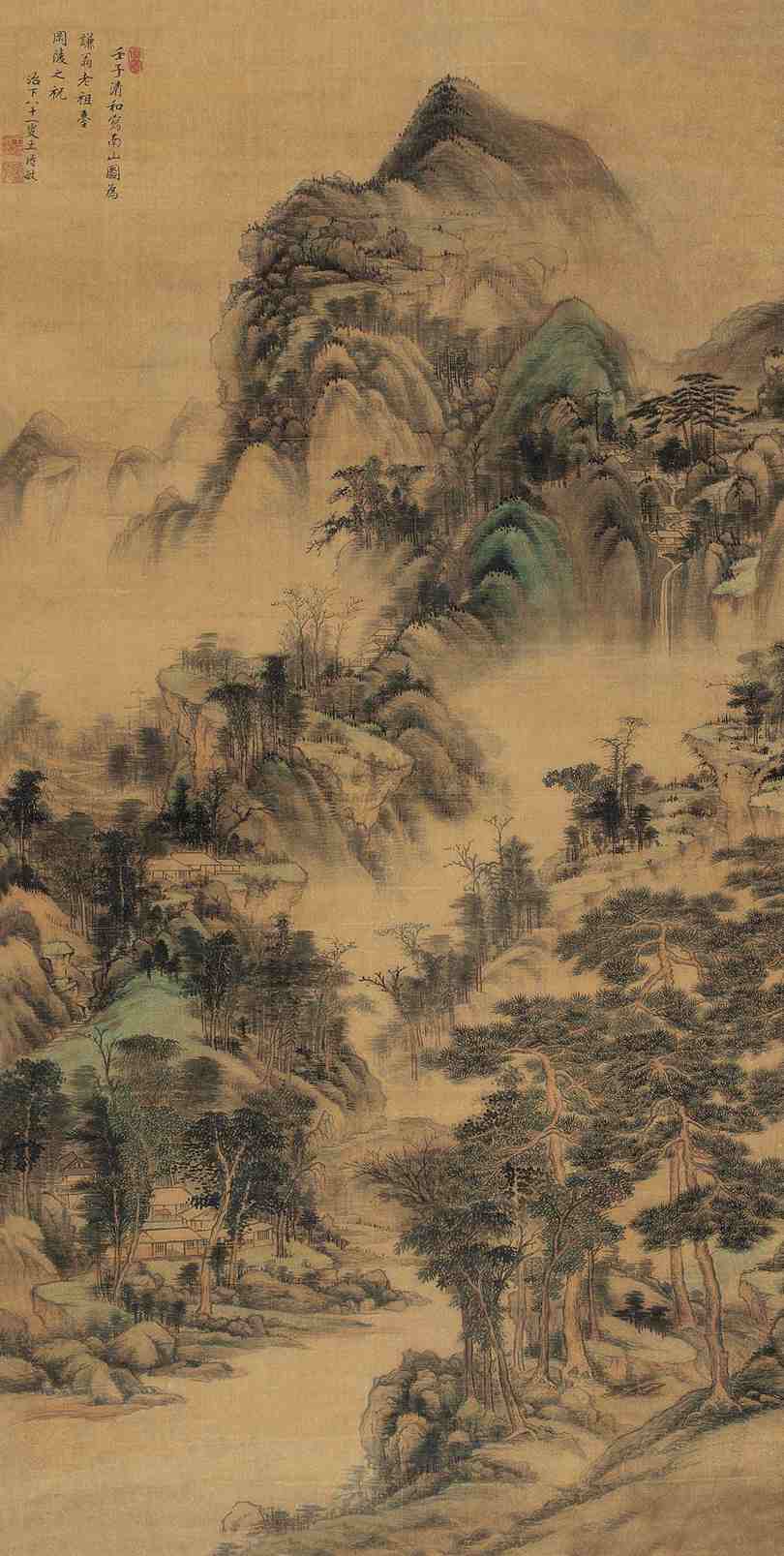 王時(shí)敏,“清四王”之一,開(kāi)創(chuàng)了婁東畫派,到了晚年,其真跡者,署名時(shí)一定是斜的,從右往左斜,不斜者多是他的兒子王撰代筆。