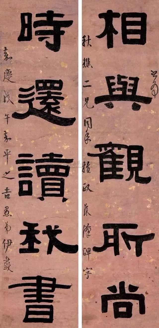 伊秉綬喜繪畫、治印,亦有詩(shī)集傳世。工書(shū),尤精篆隸,精秀古媚。隸書(shū)尤放縱飄逸,自成高古博大氣象,與鄧石如并稱大家。他的署名“綬”字,“綬”第三筆不寫一點(diǎn),用“受”字的寶蓋點(diǎn)來(lái)代替。
