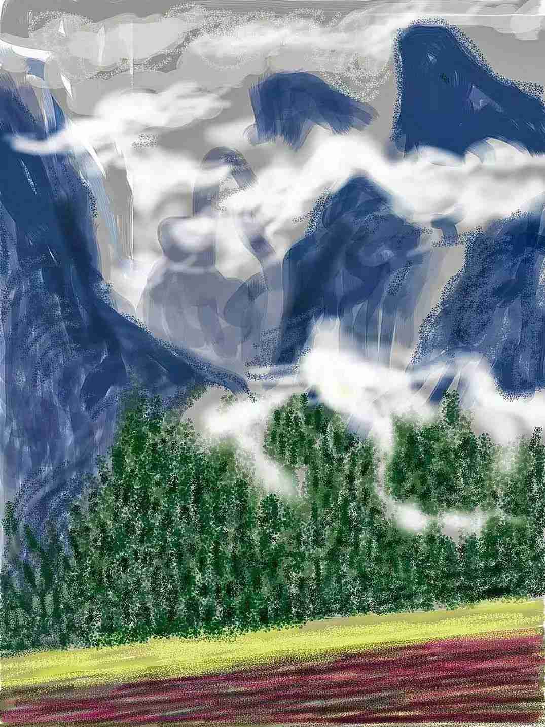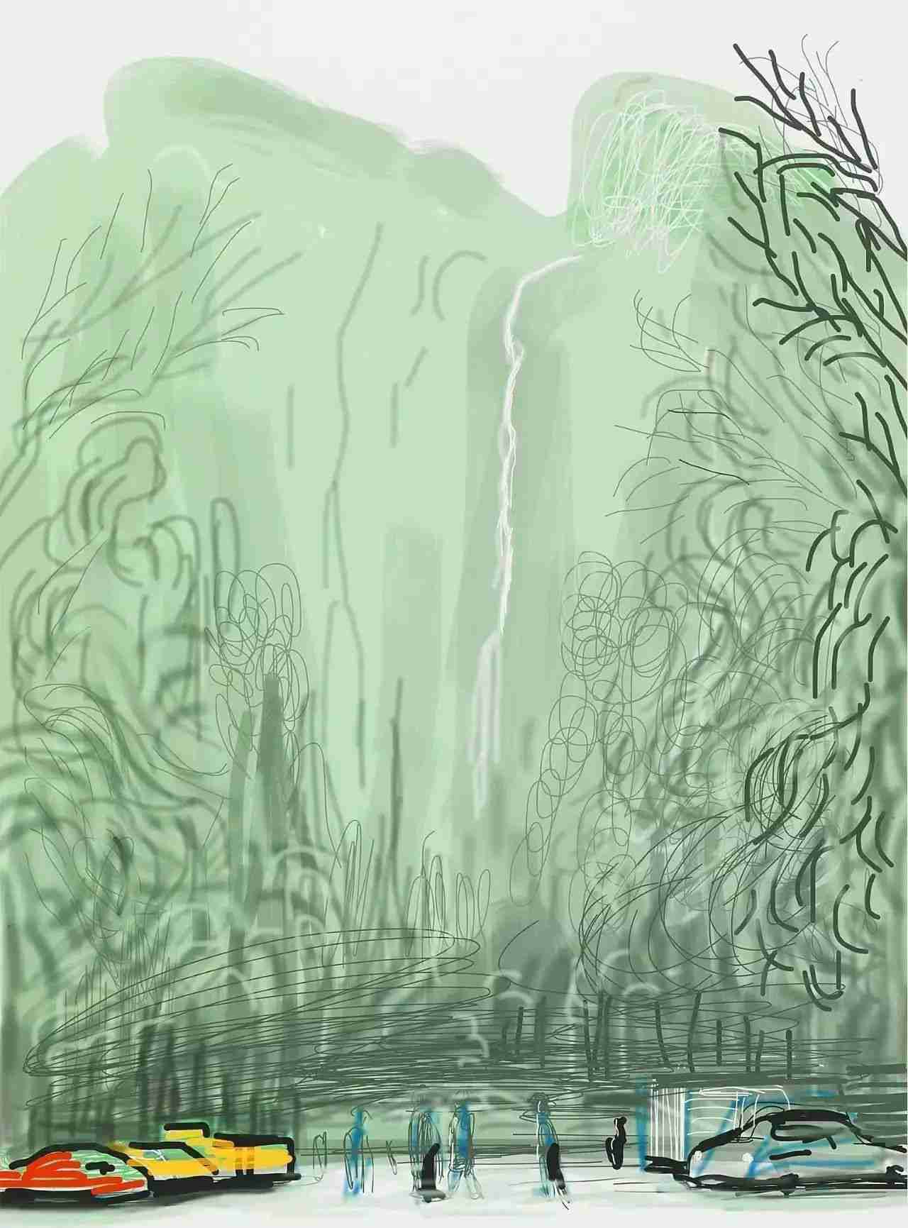 2009年,霍克尼開始使用iPhone手機(jī)進(jìn)行創(chuàng)作,2010年4月,霍克尼在73歲高齡時(shí)擁有了第一臺(tái)iPad,并很快掌握了用這個(gè)玩意創(chuàng)作的技巧。2011年元旦這一天,霍克尼用iPad畫出東約克郡普通的道路和樹木的風(fēng)景。他提醒大家“不要忘了,畫筆、鉛筆也曾是科技產(chǎn)物”,而使用iPad、iPhone反而是讓繪畫“起死回生”,并且還有一個(gè)好處是,“永遠(yuǎn)不用擔(dān)心顏料不夠用”。