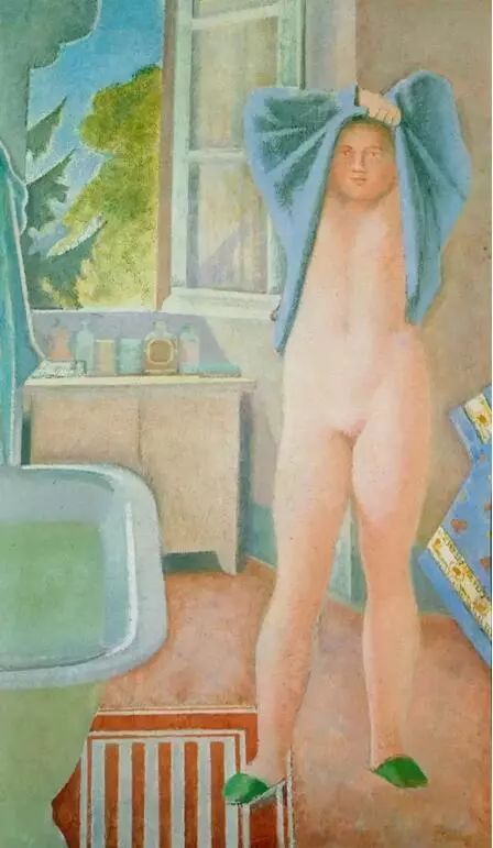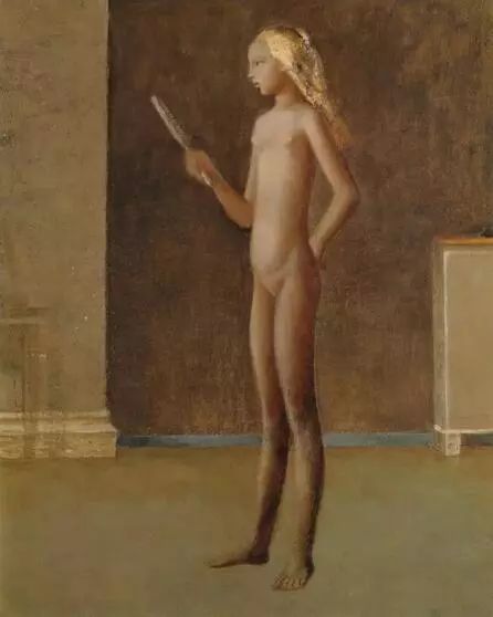 《壁爐前的少女》 Figure in Front of a Mantel 1955 藏于紐約曼徹波里坦藝術博物館比如這幅畫中描繪了以為壁爐前正對鏡子梳妝的少女,這里沒有任何欲念的困擾或罪惡的糾纏。