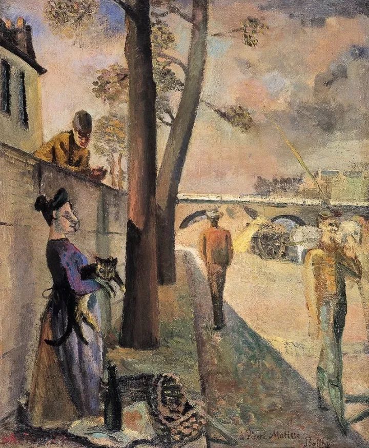 巴爾蒂斯作品其風景畫籠罩著一層淡雅的色調,似乎濃重的紅色、耀眼的黃色會破壞靜謐的意境。