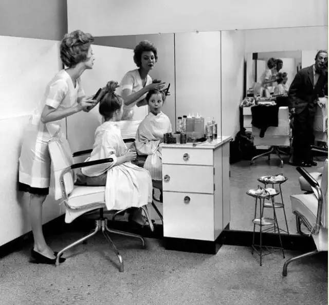 小妹妹的表情和理發師妖嬈的身段深深吸引著我,于是作者為了讓我把目光集中在小妹妹身上就無情地截去了后者,同時加上了一位母親。母親鮮亮的衣著又給整張畫面增添了童年的活潑氣氛。母親手中的衣服擠壓出一個紅唇的形狀,不知是不是畫家在作品中埋下的深層的意象呢?