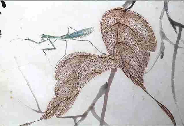 齊白石畫的草蟲種類繁多,舉凡瓢蟲、蟋蟀、蜜蜂、蝌蚪、蟬、蛾、蝗蟲,甚至蜘蛛、蒼蠅、蚊子,都在他的筆下惟妙惟肖,他畫蟲一絲不茍,極為精細,水墨淋漓,洋溢著自然界生氣勃勃的氣息。齊白石的工筆草蟲,不僅有濃墨重彩的大寫意,也有細致入微的精細描寫,是寫意和寫實的完美結合,所畫之物堪稱神來之筆,生動簡潔,活靈活現,表現出極強的繪畫功力。