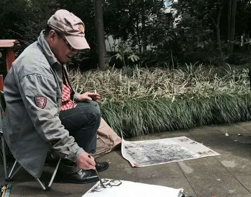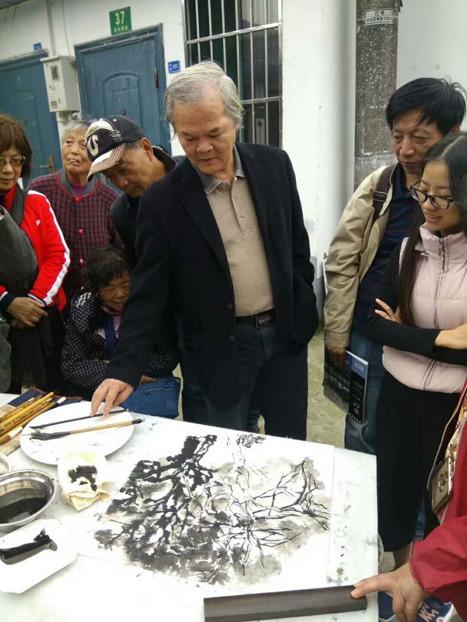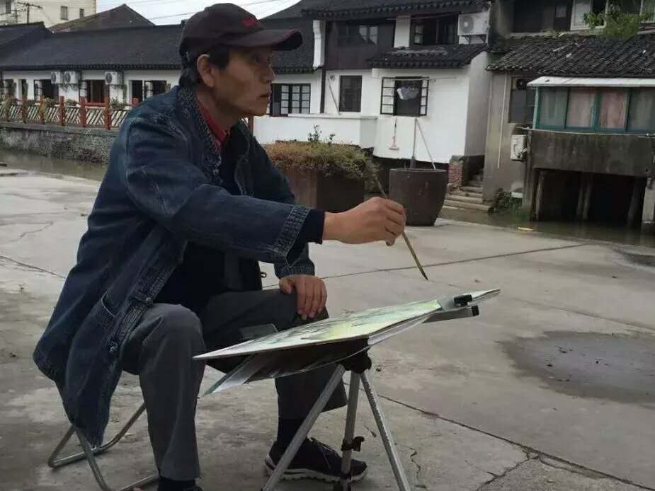 上海美協(xié)副主席、秘書(shū)長(zhǎng)陳琪在奉賢青村鎮(zhèn)寫(xiě)生示范