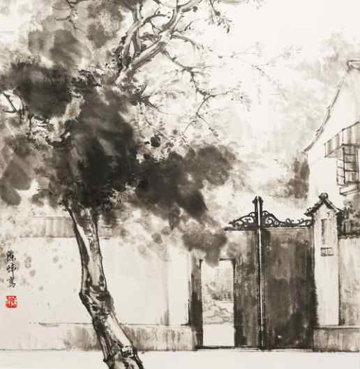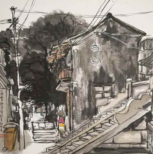 陳煒《武康路街景之一》國(guó)畫(huà) 45×45cm