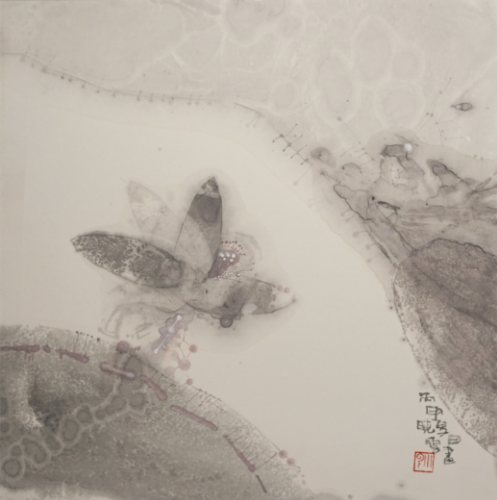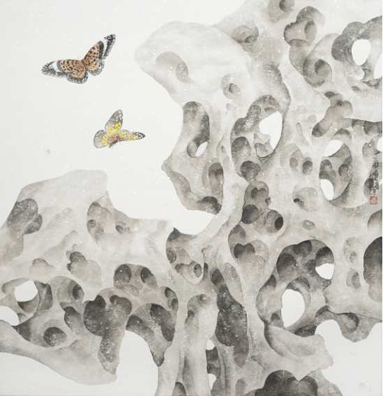 洪樑《蝶》國(guó)畫(huà) 65×65cm