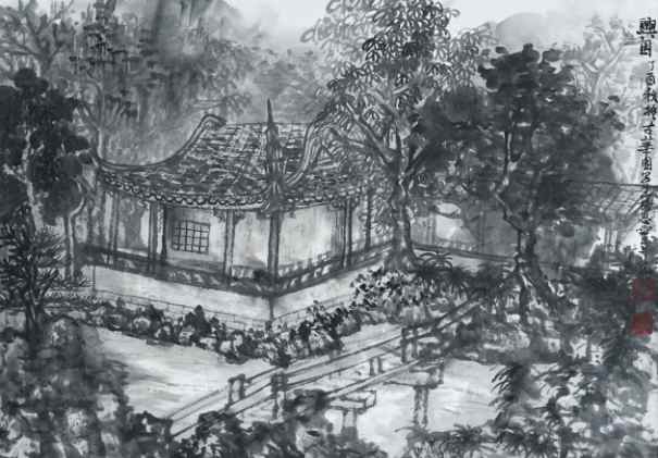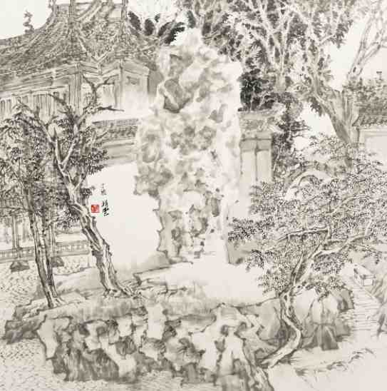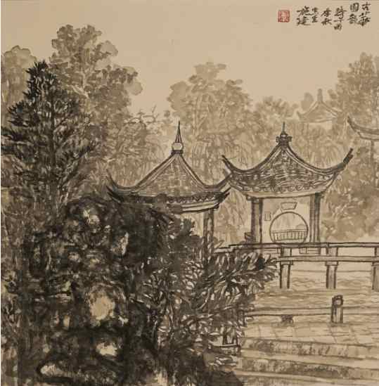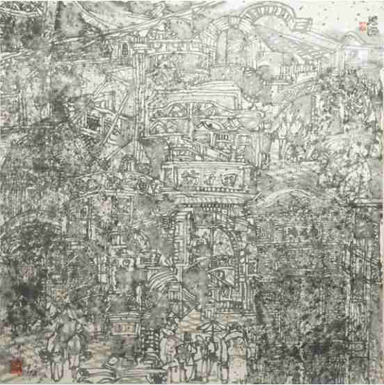 馮祥云《城市山林——豫園》國(guó)畫(huà) 50×50cm