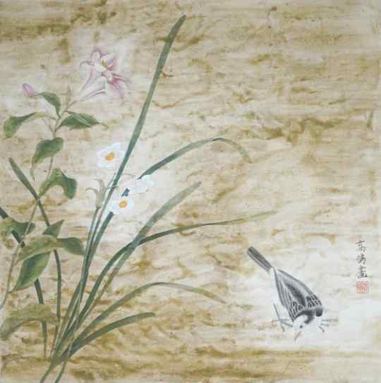 顧寰愷《花鳥(niǎo)圖》國(guó)畫(huà) 65×65cm