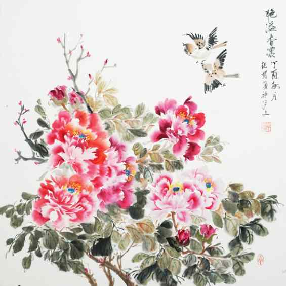 胡桂明《國(guó)色天香》國(guó)畫(huà) 65×65cm
