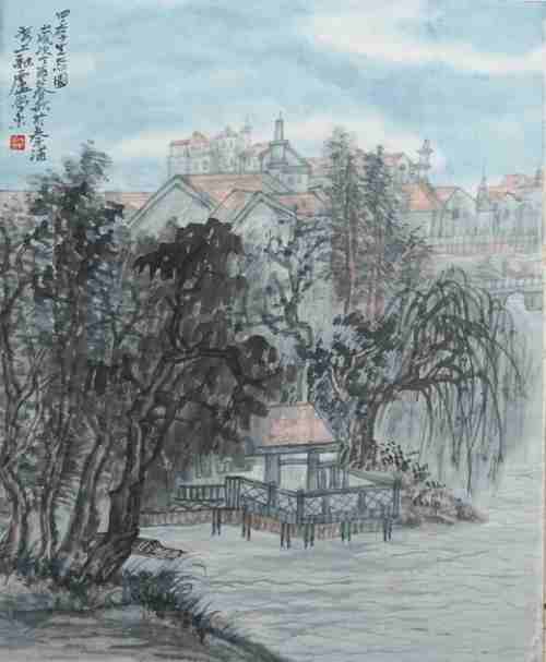 盧增賢《查濟(jì)寫(xiě)生》國(guó)畫(huà) 59×21cm