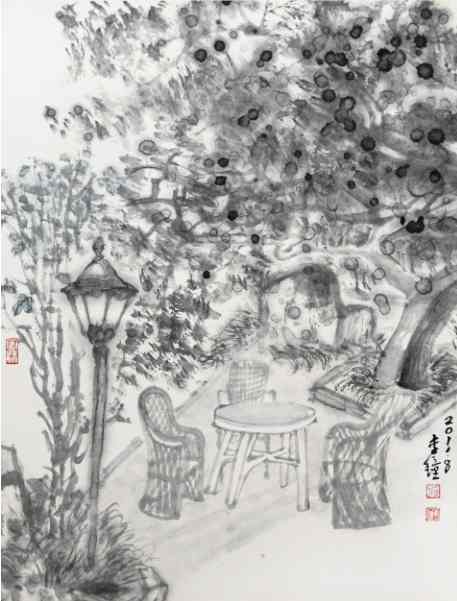 李勇智《公園一角》速寫(xiě) 42×30cm