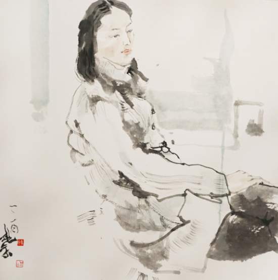 曾理《盼》國(guó)畫(huà) 65×65cm