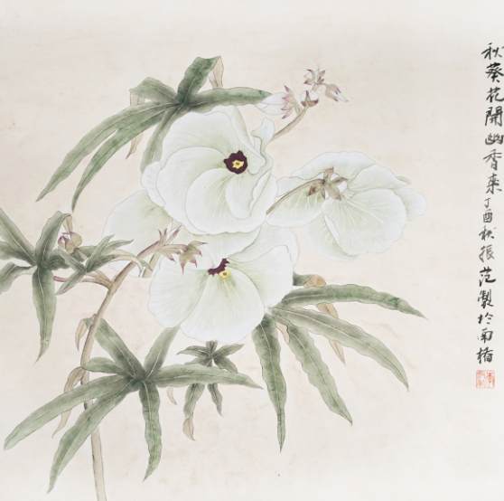 李振范《秋葵花開(kāi)幽香來(lái)》國(guó)畫(huà) 65×65cm