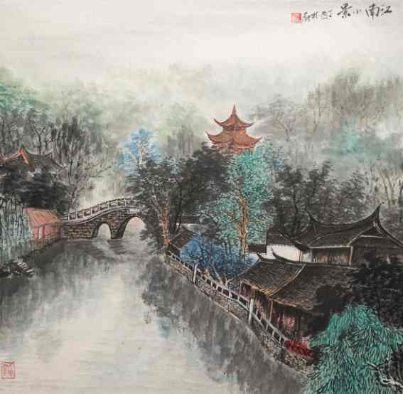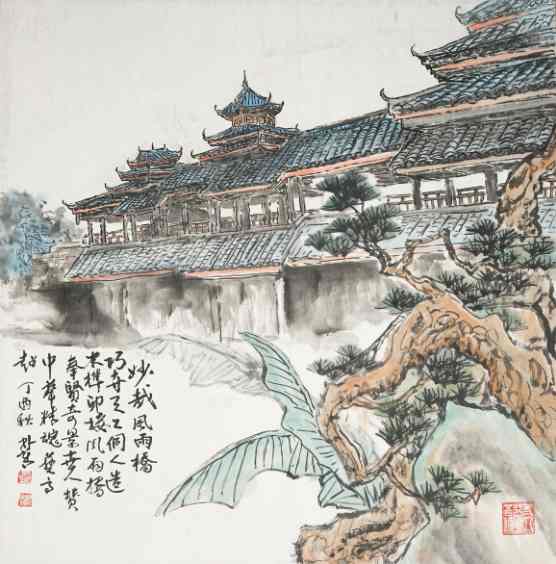 林菁《奉賢風(fēng)雨橋》國(guó)畫(huà) 69×69cm