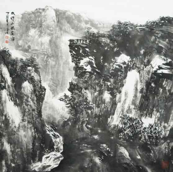 凌安生《太行山鍋家溝》國(guó)畫(huà) 68×68cm