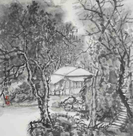 施金鐘《幽林人家》國(guó)畫(huà) 50×50cm
