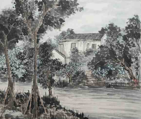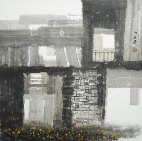 夏建峰《奉賢青村古鎮(zhèn)》國(guó)畫(huà) 68×68cm
