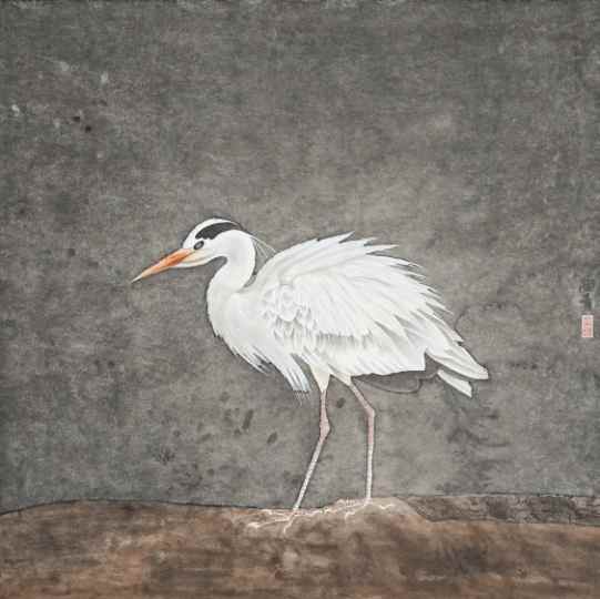 陶青《白鷺》國(guó)畫(huà) 68×68cm