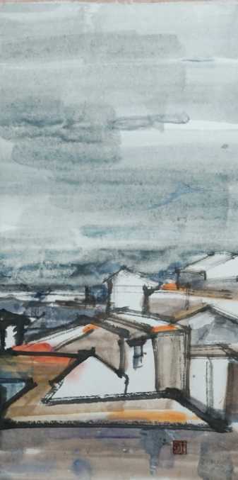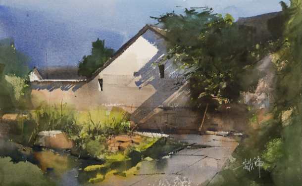 邵怡華《古鎮(zhèn)響午》水彩 18×26cm