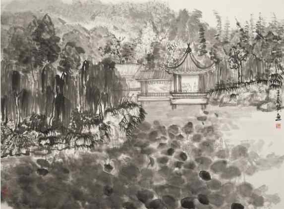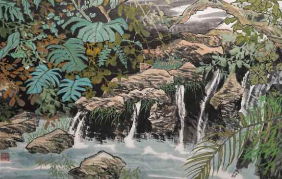 嚴(yán)榮鎮(zhèn)《上海植物園一角 2 》國(guó)畫(huà) 49×68cm