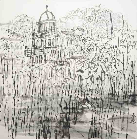 吳春魁《豫園古城公園》國(guó)畫(huà) 70×70cm