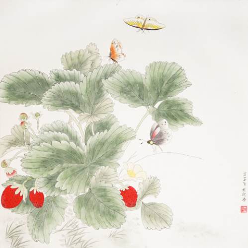 吳桂龍《蝴蝶草莓圖》國(guó)畫(huà) 65×65cm