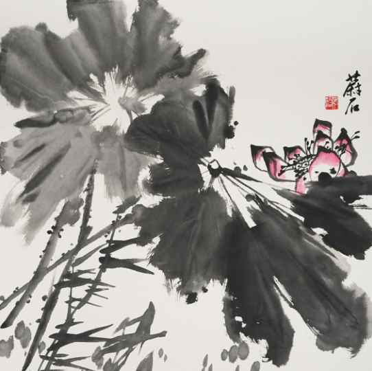 嚴(yán)蔚若《荷花》國(guó)畫(huà) 68×68cm