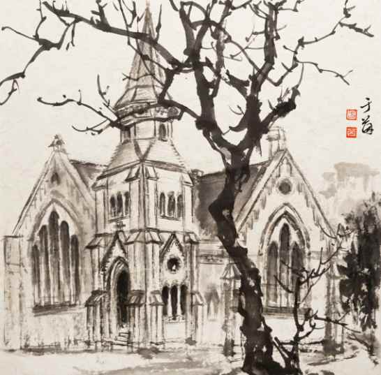 于茵《上海街景寫(xiě)生》國(guó)畫(huà) 31×31cm