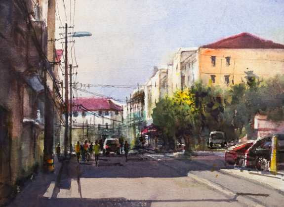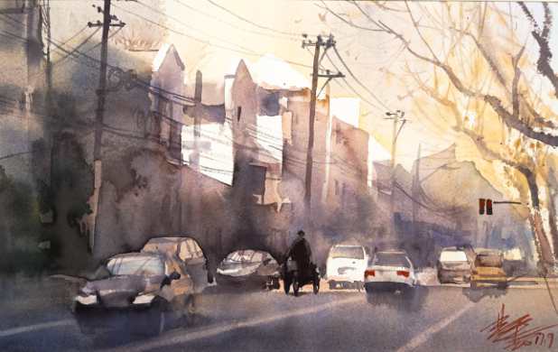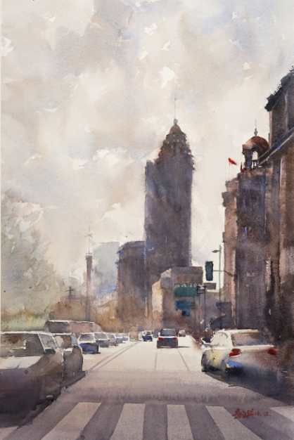 蘭平《武進(jìn)路寫(xiě)生》水彩 57×38cm