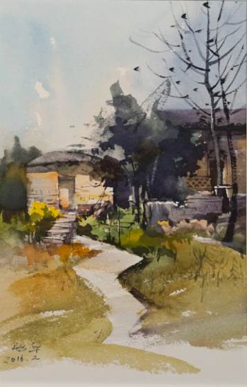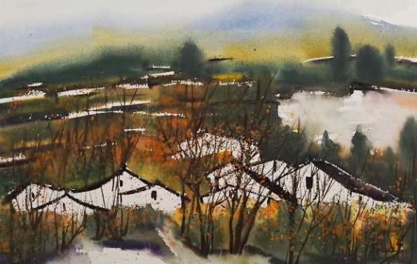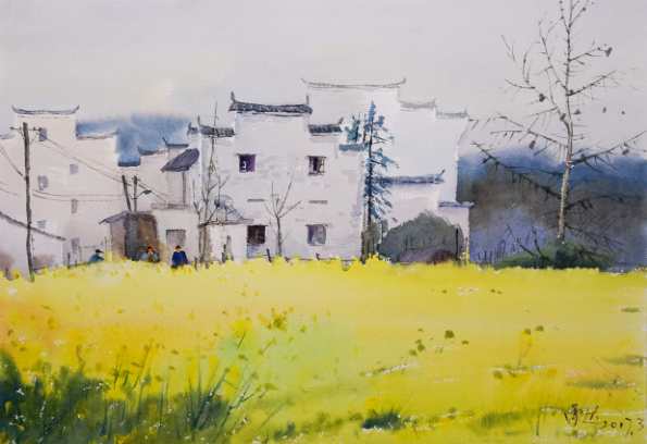 黃鼎鋒《查濟(jì)村口》水彩 48×68cm