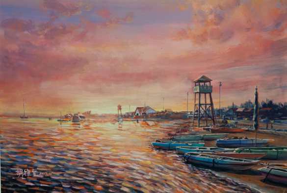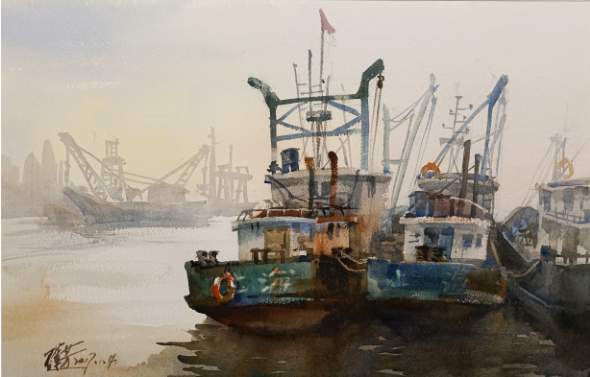 王蓮芳《避風(fēng)的港灣》水彩 38×57cm