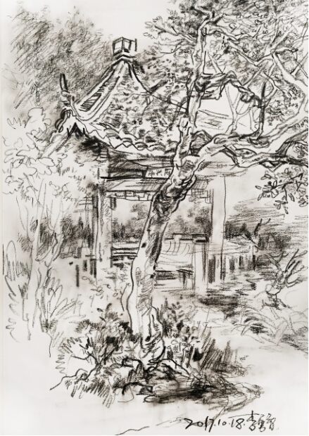 陳瑾《公園美景速寫(xiě)系列——亭臺(tái)樓閣》速寫(xiě) 29×20cm