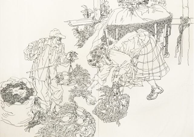盧英鑒《湖南鳳凰古城農(nóng)貿(mào)集市速寫(xiě)之二》速寫(xiě) 41×59cm