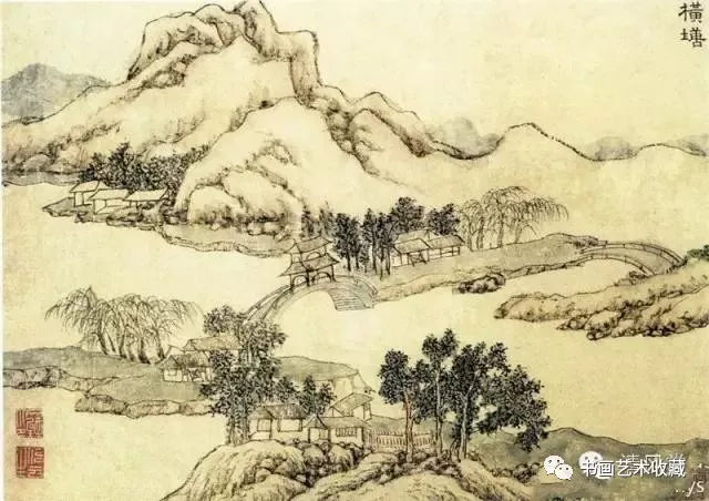 文征明作品粗筆有沈周溫厚淳樸之風,又有細膩工整之趣;細筆取法于王蒙,取其蒼潤渾厚的構調,又有高雅的風采。長于用細筆創造出幽雅間靜的意境,也能用瀟灑、酣暢的筆墨表現寬闊的氣勢。此作為其所作小幅畫之一,蕭疏簡練,格調高雅,淡逸文靜。