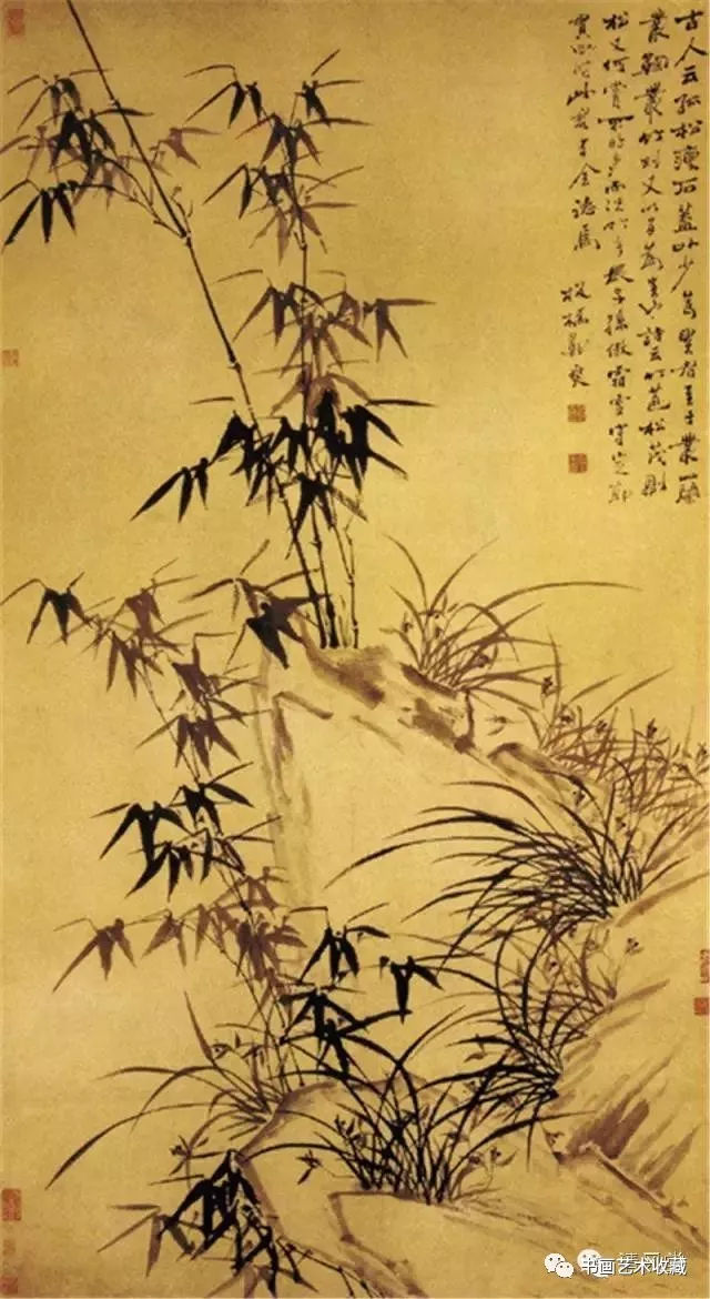鄭板橋此圖畫蘭竹與石,用筆遒健圓勁,極疏爽飛動之致。石用中鋒勾勒,筆致瘦硬秀拔,皴擦較少,而神韻具足,竹用濃筆,石用淡墨,濃淡相映,妙趣橫生??傆^全圖,氣勢俊邁,風神蕭散,傲然挺立。
