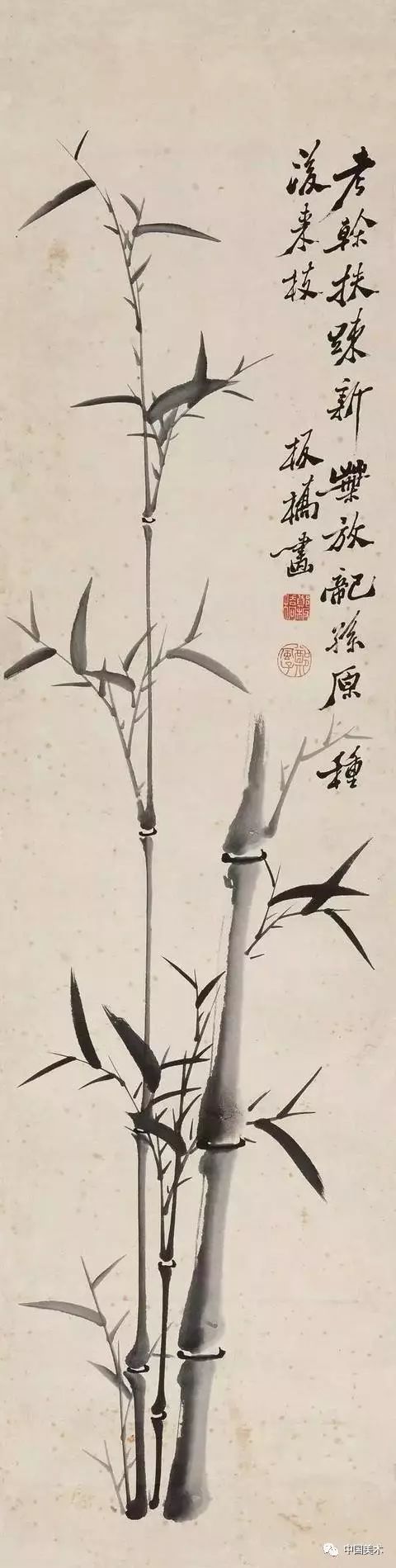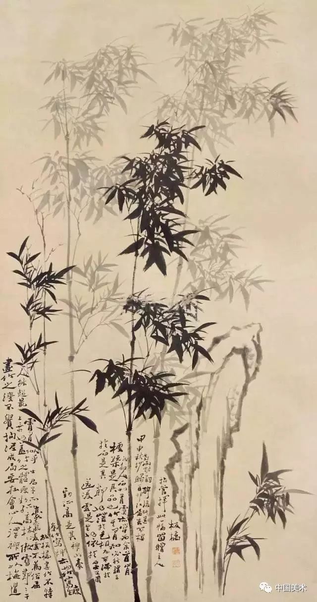 鄭板橋晚年時畫的《竹石圖》,全幅畫雖不著色,卻使人感到翠色欲流。他自己為這幅畫題詩:“四十年來畫竹枝,日間揮筆夜間思。冗繁削盡留清瘦,畫到生時是熟時”。他畫了40年竹子,終于悟出繪畫須去掉繁雜提煉精髓的道理。 喜竹愛竹物我合一 鄭板橋的竹風韻超然,首先得之于喜竹愛竹。鄭板橋曾說:“凡吾畫竹,無所師承,多得于紙窗、粉壁、日光、月影中耳。”他的繪畫創作規律:眼中之竹——胸中之竹——手中之竹,即看竹、思竹至畫竹。他的繪畫創作規律:眼中之竹——胸中之竹——手中之竹,即看竹、思竹至畫竹。