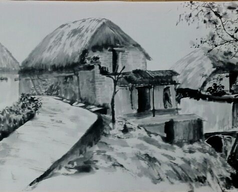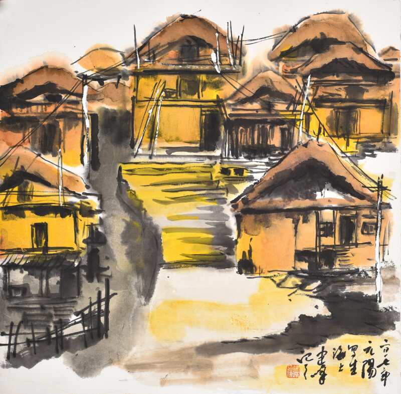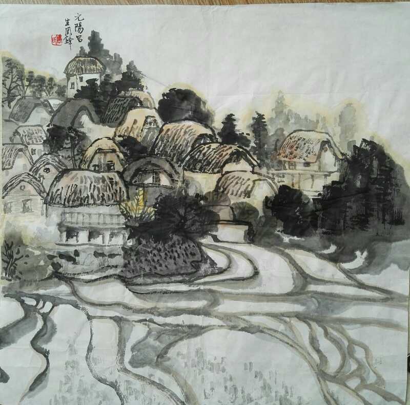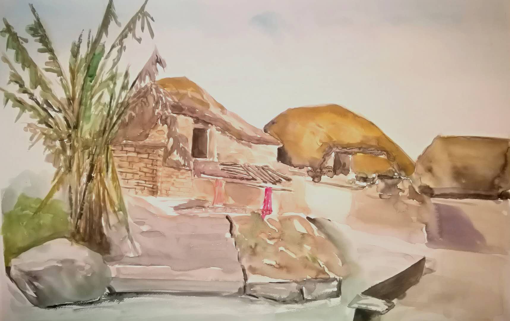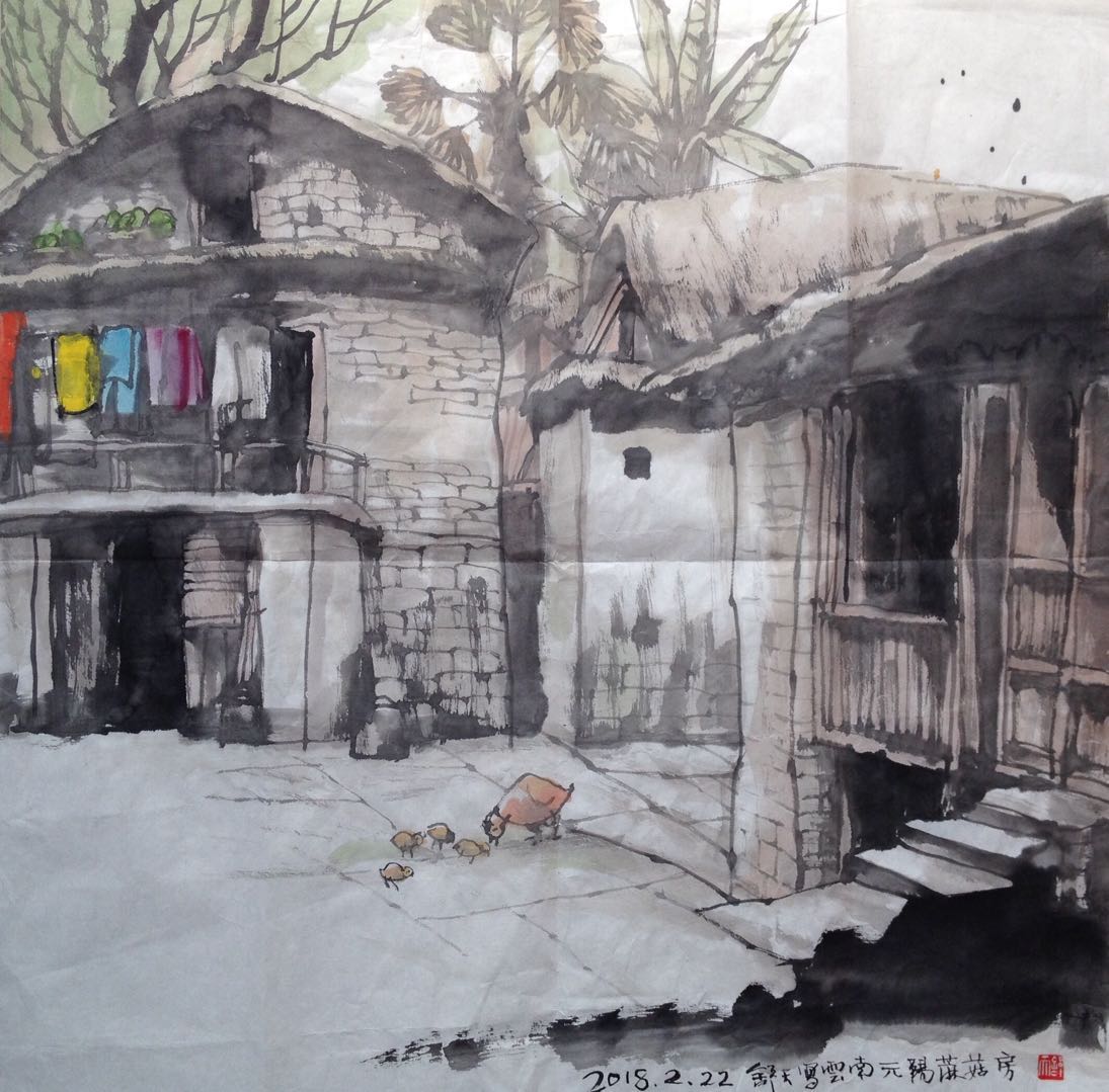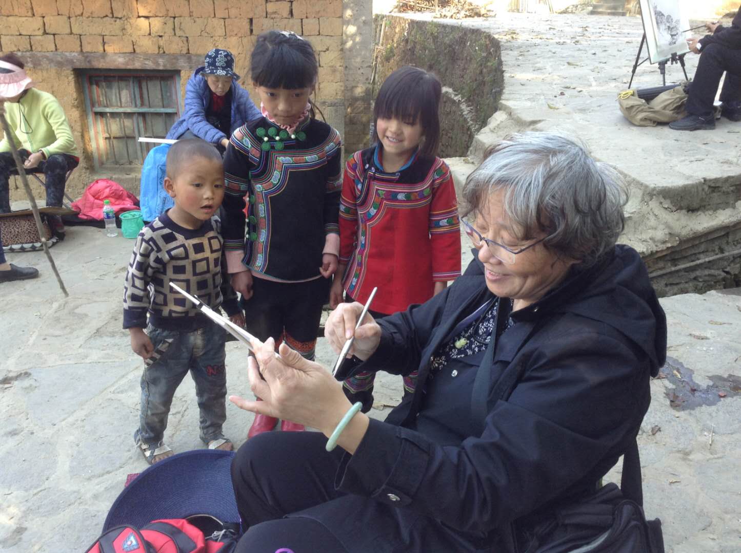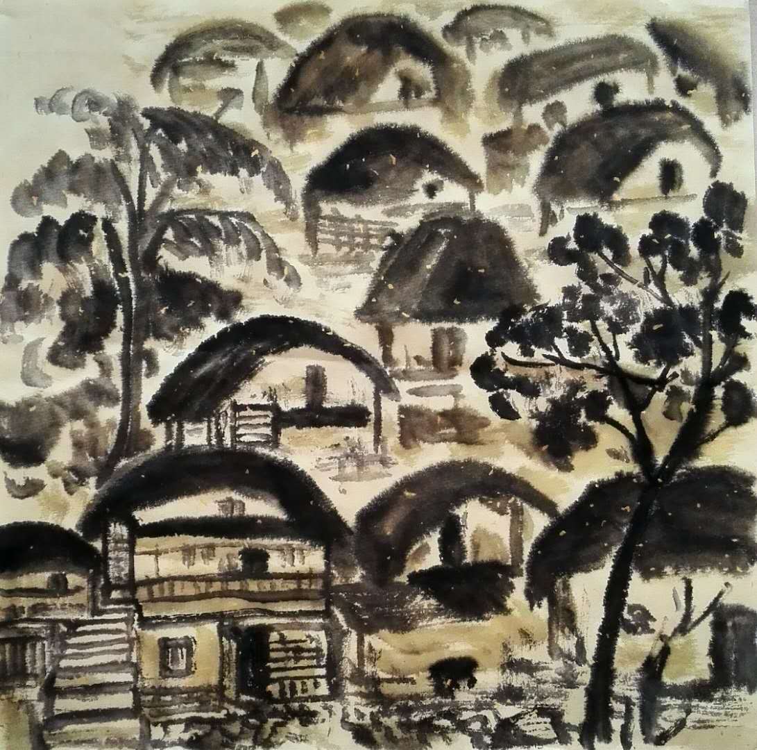 原來準備第二天上午去阿者科村蘑菇房寫生的,由于明天要下雨,時間臨時調整了。決定中午先回賓館吃午飯(按原計劃讓賓館把午飯送到梯田的寫生點),下午兩點出發去蘑菇房寫生,由于旅游旺季交通情況和路況不太熟悉,我們臨時請了當地的導游。盡管已經是下午了,但是路上的車還是非常的多,特別是過多依樹景區車子前行非常艱難,經常停下來等候,但老師們心情還是非常愉快的,還用相機記錄下來沿路的風景。十幾公里的路大巴開了近一個小時,車子停靠在阿者科村進口的大路邊,導游帶著我們沿著小路徒步二十分鐘左右,我們來到村口,當看到芭蕉林、古樹下哈尼族古村落和蘑菇房群時,大家心情有點激動。
