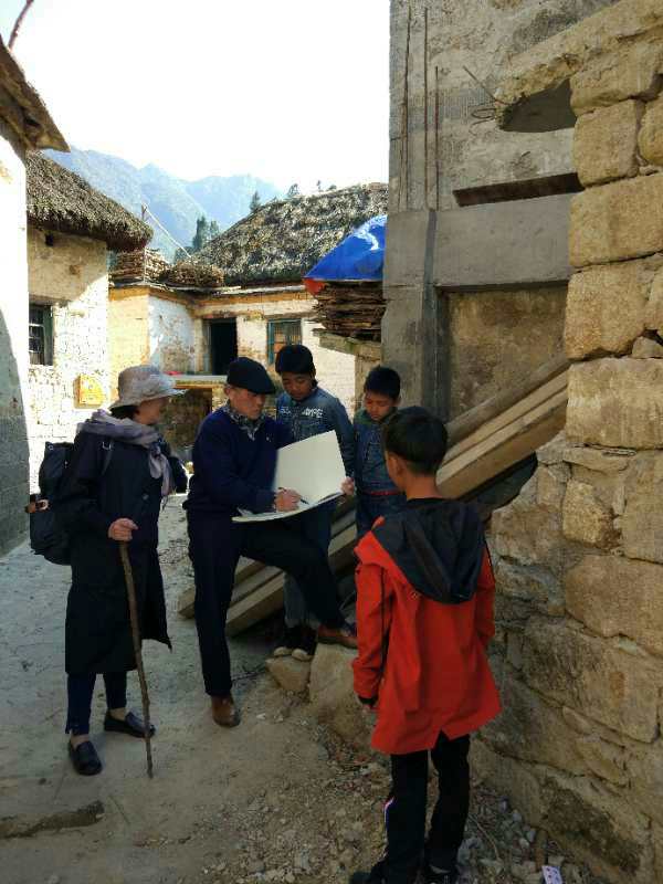 今天天氣非常好,大家沿著毛石鋪就的崎嶇小道漫步進村,山道盡頭就是非常典型哈尼族村寨——阿者科村。村寨位于半山腰,村寨上方遍布著茂盛的原始森林,其中村口的寨神林則象征著神明,不可破壞。村寨外圍海拔較低處,盡是長期開分的多級梯田,是村莊的農業生產的空間,主要種植水稻和玉米。村寨則由一棟棟傳統民族建筑蘑菇房組成,錯落有致。村莊采用重力自流的方式通過溝渠和管道取山泉水。這種傳統的人居環境充分體現了山、水、村、田、林和諧共生的關系。