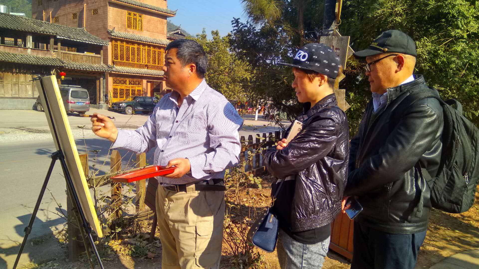 ▲在那柯里普洱版畫創(chuàng)作基地門口合影
