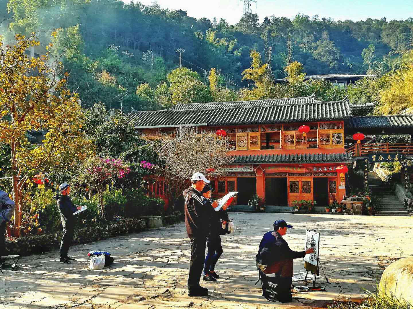 普洱版畫基地負責人冷光冕老師在驛站等候我們,并安排了我們吃、住和行。我們放下行李隨冷光冕老師前去參觀了版畫創(chuàng)作基地。
