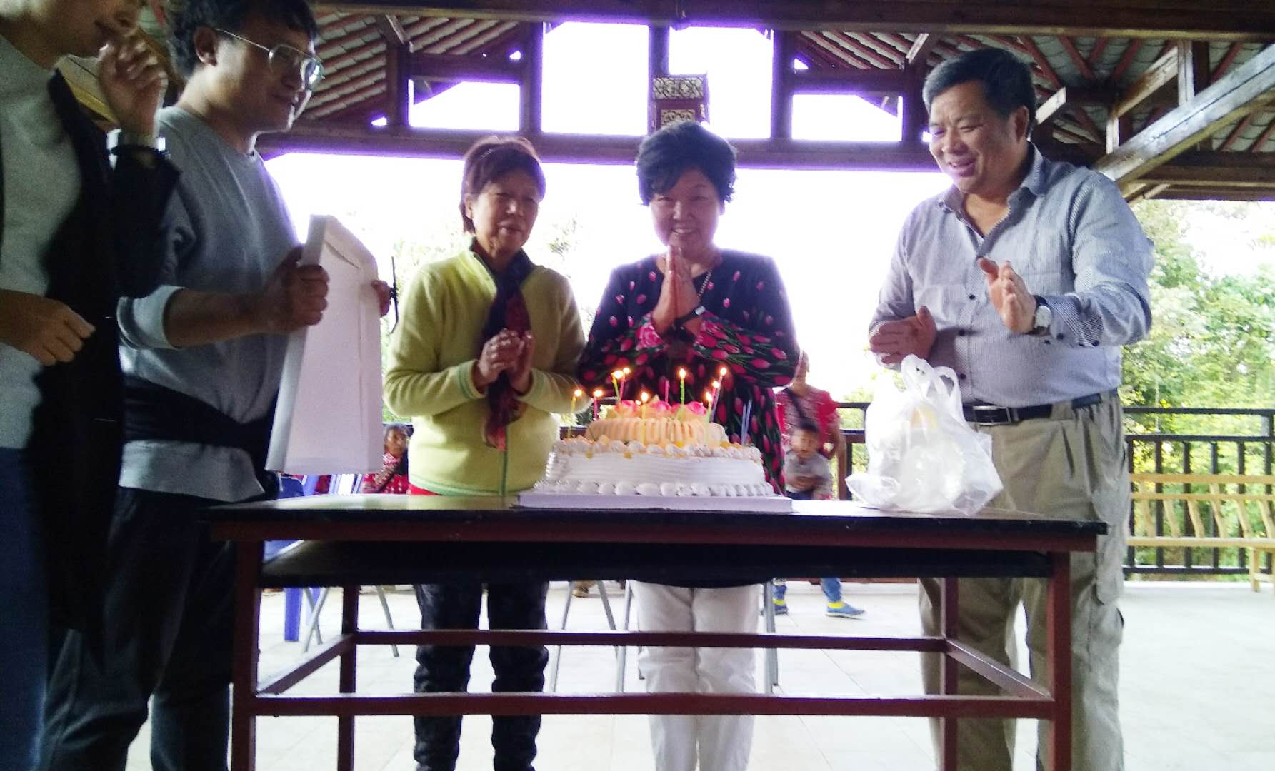 ▲今天是一個特殊的日子,我們的胡曉敏老師度過了一個不平凡的68歲生日,謝謝李劍峰館長從三十多公里的鎮上幫我們帶過來的生日蛋糕。