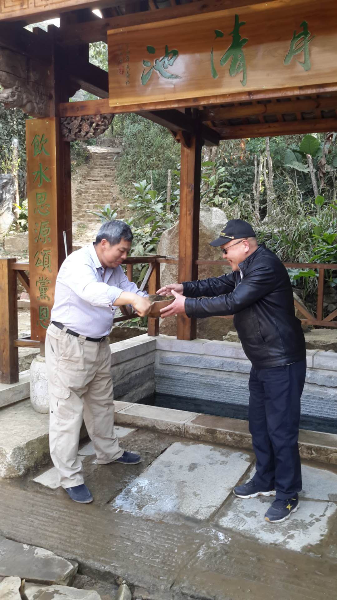 ▲在泉水亭和當地的黨政領導,部分村民一起合影