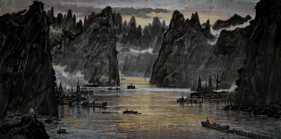 三峽夜航 69cm X 139cm 紙本設(shè)色