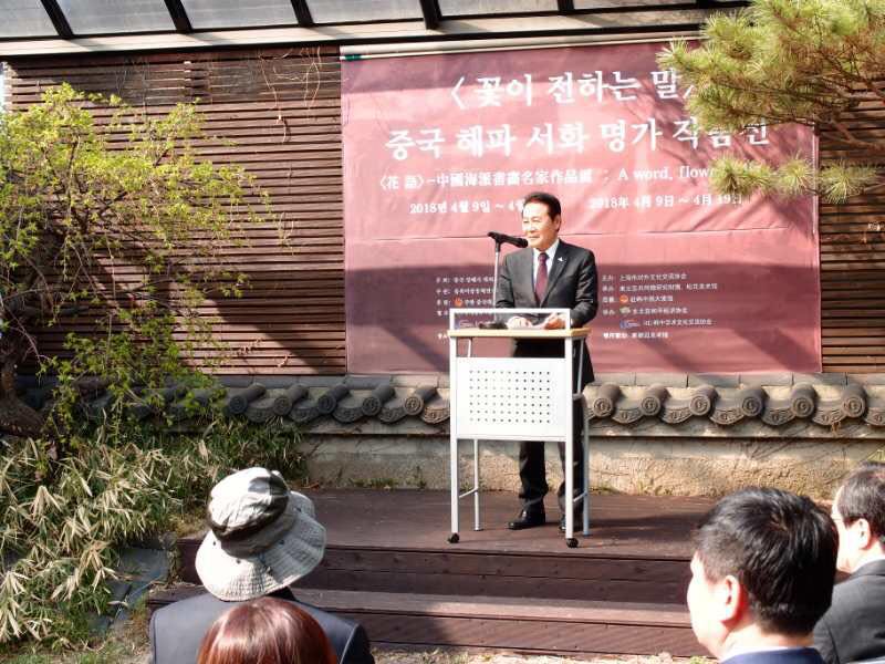 花語-展,中國駐韓國大使館公使金燕光先生致辭。