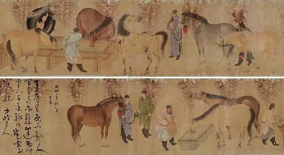 他所畫鞍馬,如《人騎圖》。《人馬圖》、《秋郊飲馬圖》,用筆簡括,色彩單純淡雅,風格上力追唐人風韻。《秀石疏林圖卷》用飛白法畫石的紋理結構,以篆法畫樹干,形神俱足,筆精墨妙,是他自己“書畫用筆同法”主張的具體體現。趙孟頫還畫了不少工致的佛像、經史故事等作品,其中有白描人物畫卷傳世。