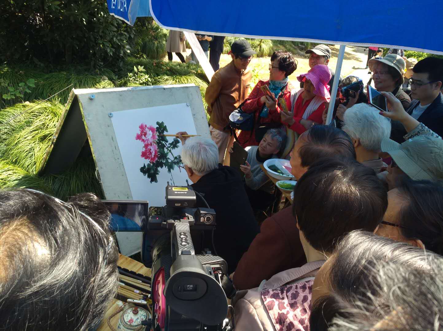 活動(dòng)今天上午十點(diǎn)鐘在上海植物園牡丹園舉行,這次活動(dòng)邀請了上海著名花鳥畫畫家陳世中老師做現(xiàn)場示范,上海美術(shù)家協(xié)會(huì)副主席兼秘書長陳琪老師也早早地領(lǐng)導(dǎo)現(xiàn)場,參加今天活動(dòng)的畫家和美術(shù)愛好者共計(jì)六十多人,今天的活動(dòng)得到了上海植物園領(lǐng)導(dǎo)的大力支持,下午一點(diǎn)鐘,媒體進(jìn)行了現(xiàn)場直播,園領(lǐng)導(dǎo)吳園長首先作了熱情洋溢的講話,然后陳世中老師開始了四尺整張的牡丹花創(chuàng)作,活動(dòng)正在進(jìn)行中。