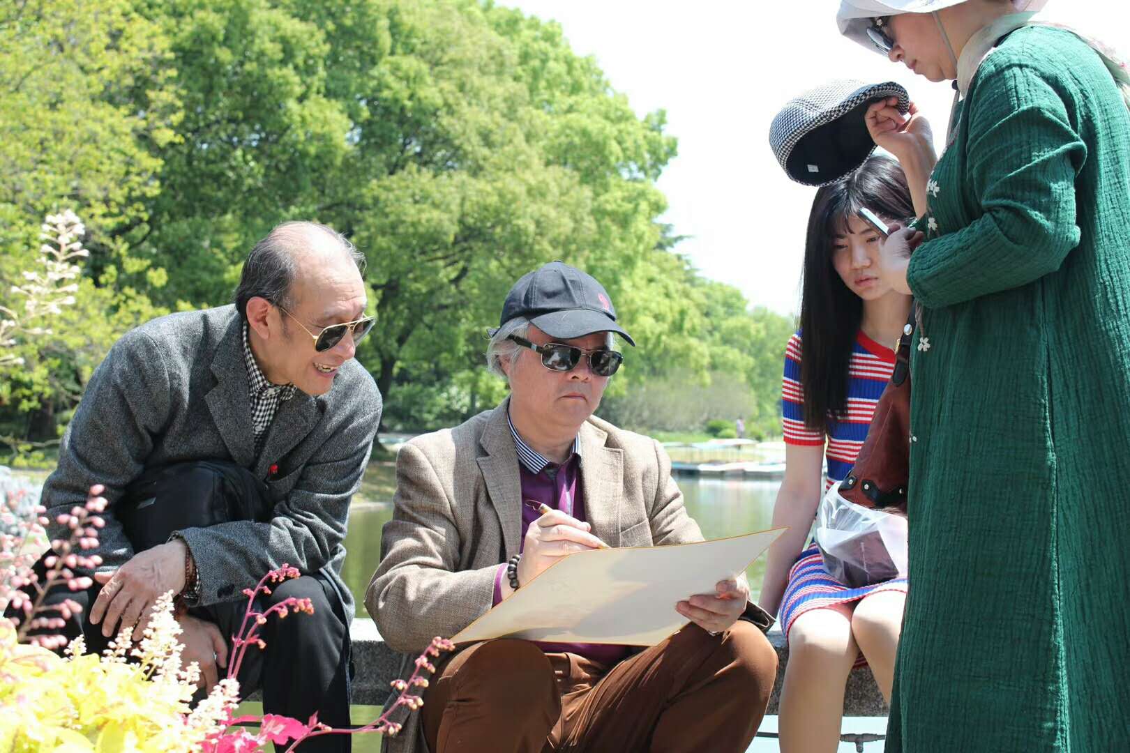 市文聯胡凌虹老師和虹口區美協主席余仁杰、卞真、夏建峰在一起商量工作