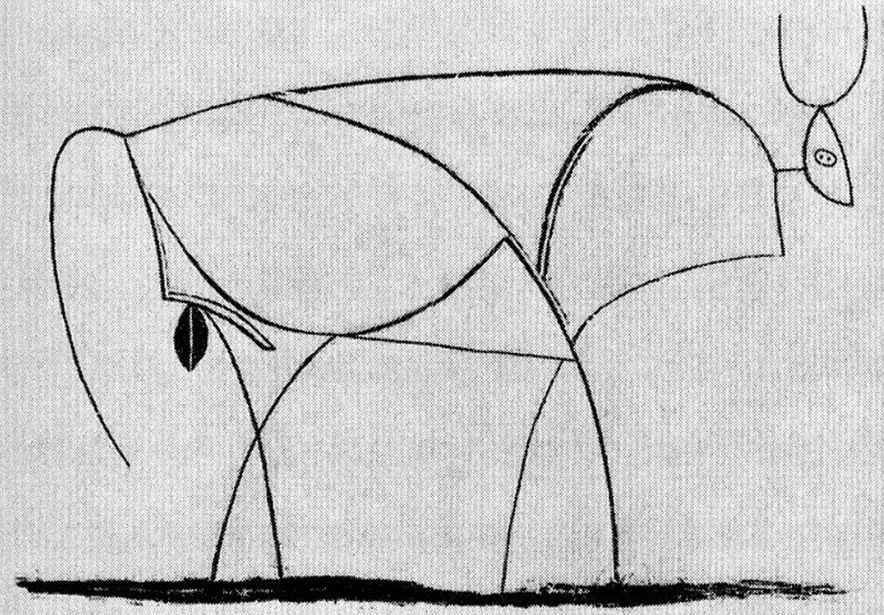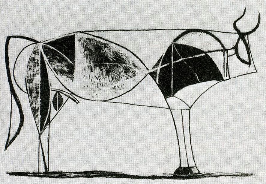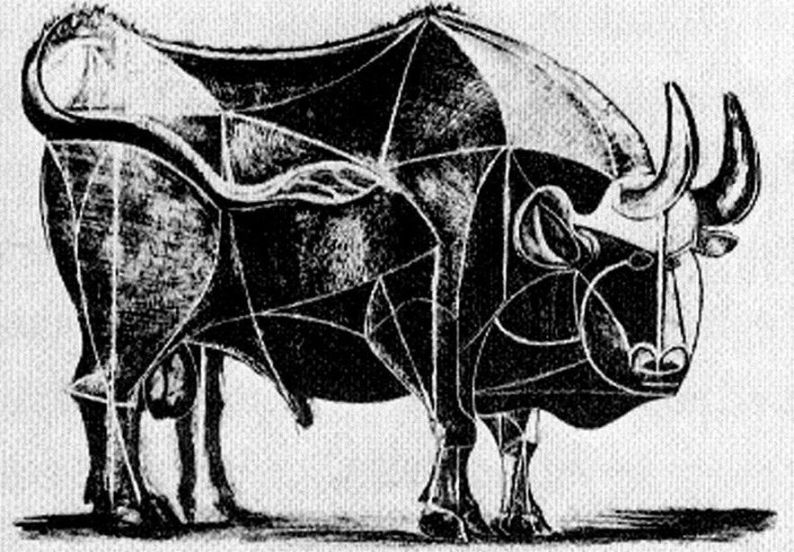 從畢加索中后期畫的一系列關(guān)于牛的速寫,可以看出一些,一頭寫實(shí)的牛,是如何進(jìn)化成立體派的牛,非常值得一看。