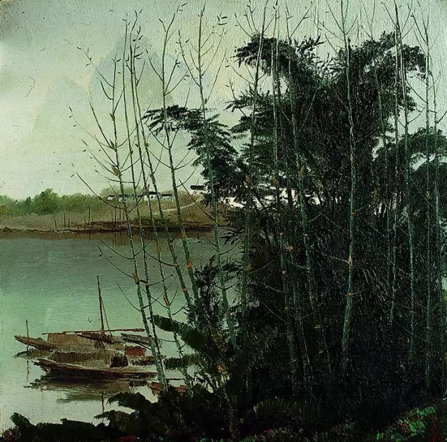 吳冠中-河邊老樹-61×46-布面油彩-1977